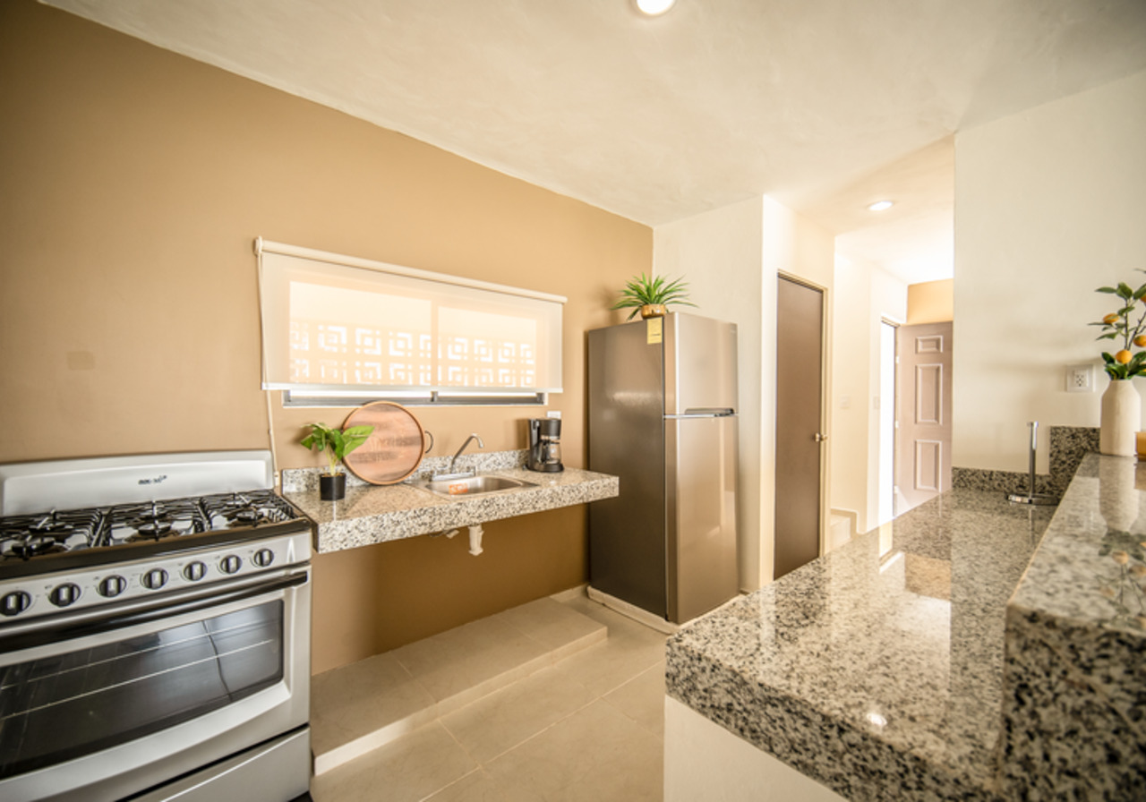 Cocina con meseta de granito.