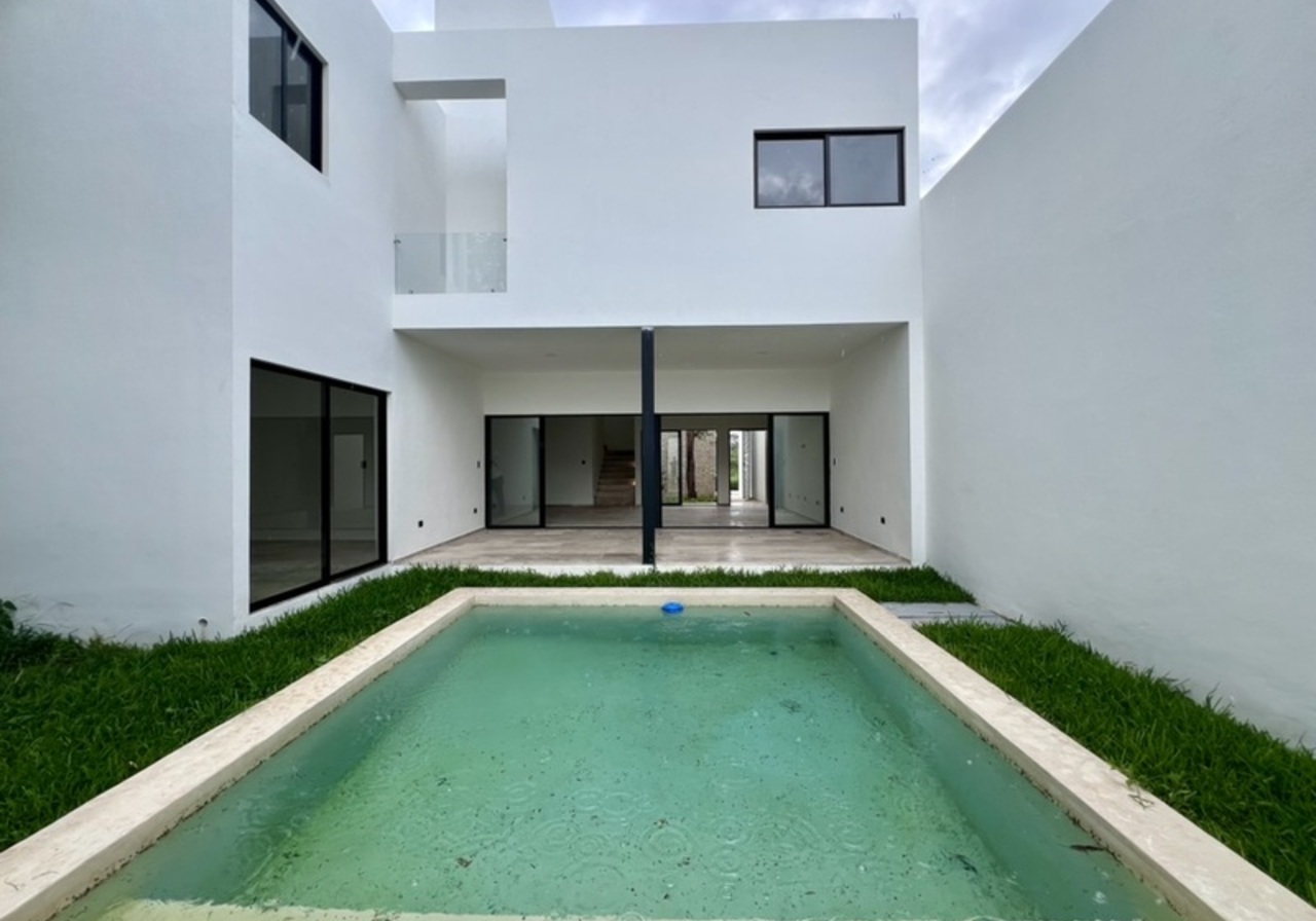 Y es aquí donde tenemos esta moderna casa en venta con 1 recámara en PB y 3 en PA, cocina equipada, alberca, cochera techada y portón.