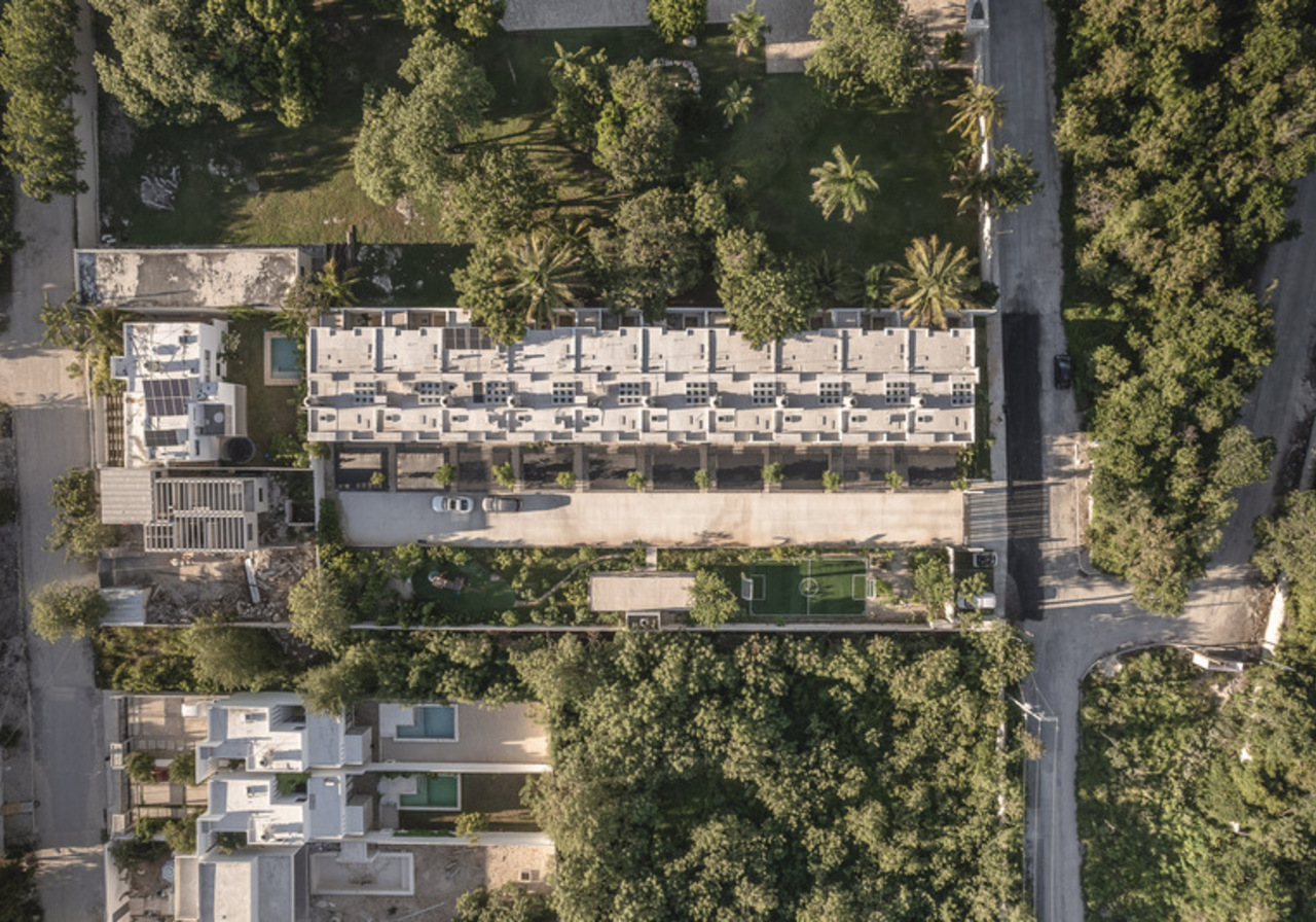 Complejo que está integrado por 10 townhouses independientes, cada uno de dos niveles, conformadas por 3 recámaras, 1 cuarto de servicio, 4.5 baños, terraza, jardín privado, piscina, cocina abierta, jardín interior, sala-comedor corrido y garaje para 2 autos.